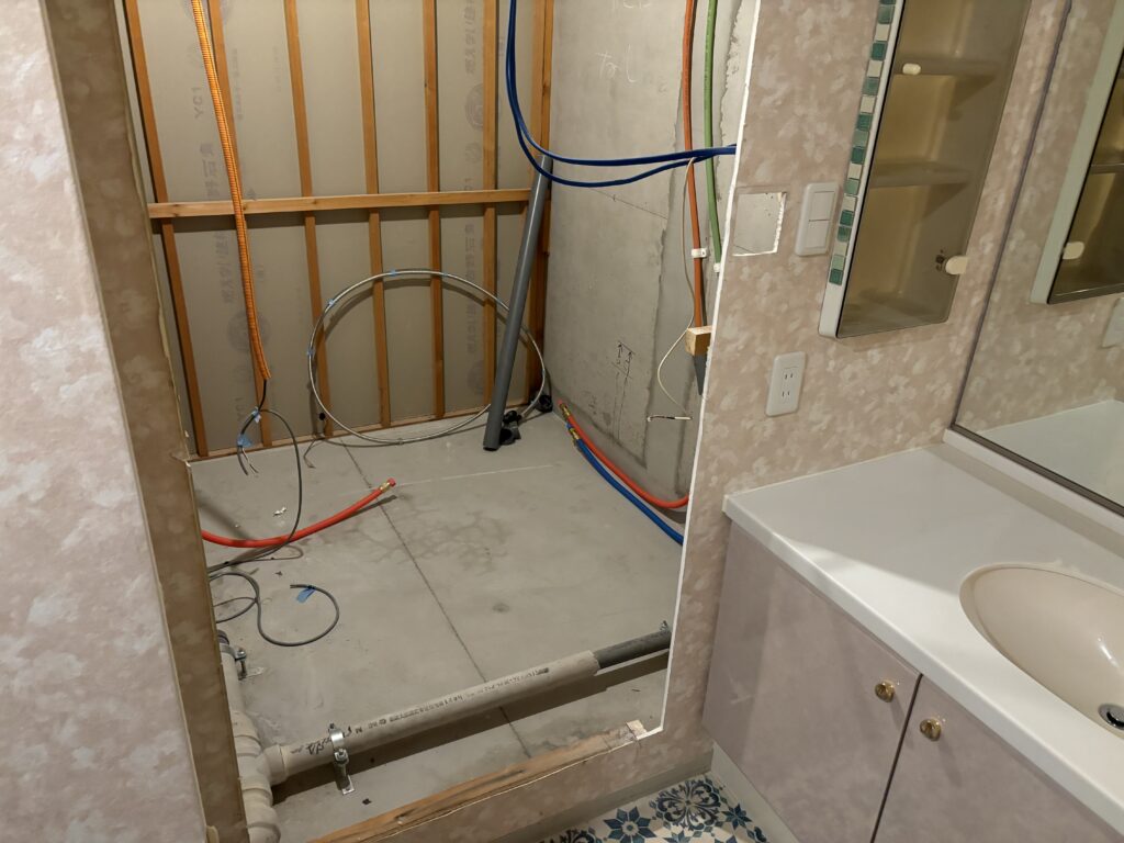 解体後です。給水給湯や排水管を所定の位置に設置します