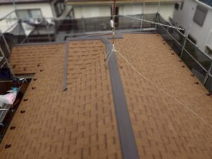 横浜市旭区で屋根カバー工事 オークリッジスーパーを施工しました 棟板金や雪止め金物などを外していきます ゴムアスのルーフィングを水下より貼り付けていきます オークリッジを葺き上げていきます 最後に棟板金を取り付けて完了で […]